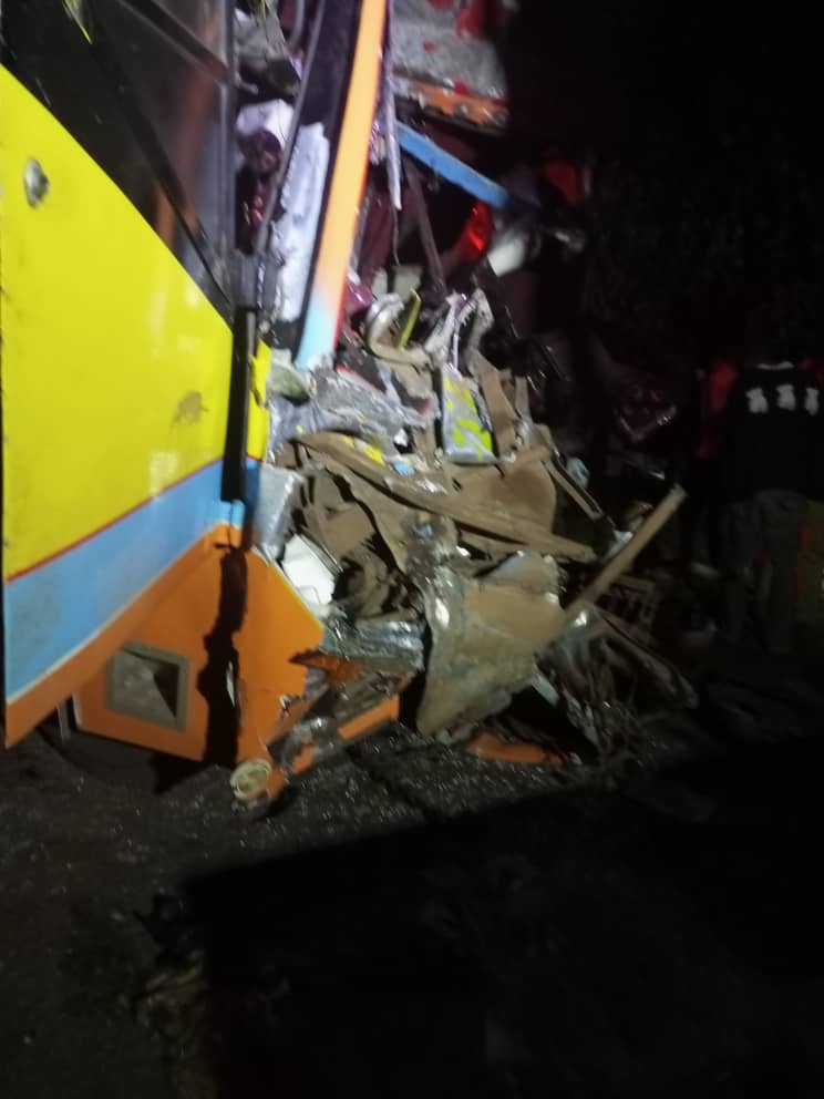 The Isuzu bus Reg No UAR 293M belonging to Wanagon coaches collided with a Nissan bus Reg No UAH 781Z belonging to Gateway Bus Service.