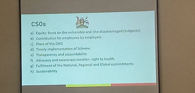 Civil society organisations are concerned about equity focus on the vulnerable and the disadvantaged (indigents), contributions for employees by employers, timely implementation of the scheme, transparency and accountability, advocacy awareness creation (right to health), sustainability and fulfilment of the national, regional and global commitments.