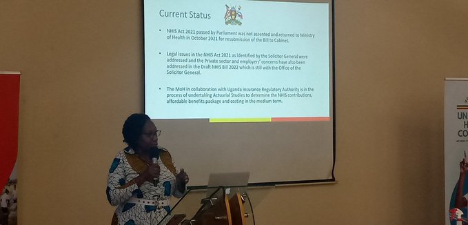 The Commissioner for Planning, Financing and Policy at the Ministry of Health, Dr. Sarah Byakika, on Thursday, May 5, 2022, briefed the press and other non-state actors on the progress of the National Health Insurance Scheme (NHIS) Bill development process.