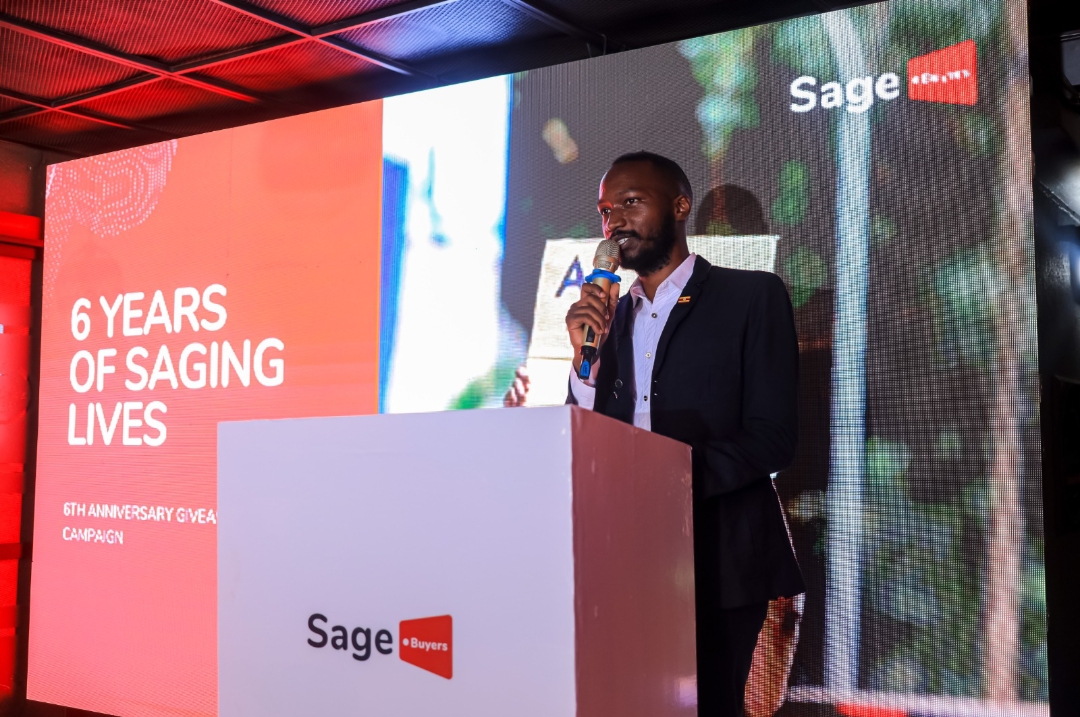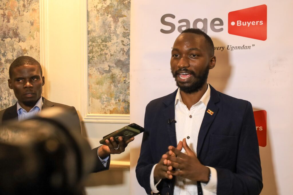 Dr. Stanley Ssempijja, Team Lead at Sage Buyers, speaking at the launch ceremony