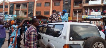 Moving atop his car and using loudspeakers, Besigye swore not to relent until the prices of commodities have been lowered.