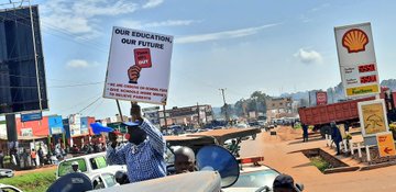 During his Thursday encounter with police, Besigye was seen carrying a placard reading: “Placard Our Education, Our Future. Most ordinary people are choking on school fees.”