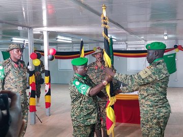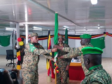 The Commander of Land Force, Lt Gen Kayanja Muhanga, Tuesday officiated the Handover/Takeover ceremony of the office from Brig Gen Keith Katungi to Brig Gen Peter Gaetano Omolla in Mogadishu-Somalia.