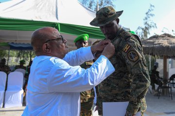 Also honoured was the outgoing Sector One Deputy Commander, Col David Opeero. The Sector One area of responsibility which includes the capital Mogadishu is under the jurisdiction of the Ugandan troops serving under ATMIS.