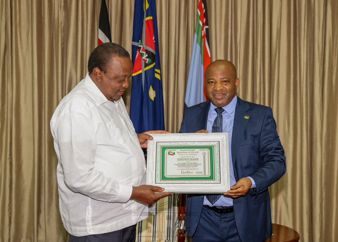 President Kenyatta received the National Order of the Republic of Burundi, the highest award of honour in the East African nation, at State House, Nairobi.