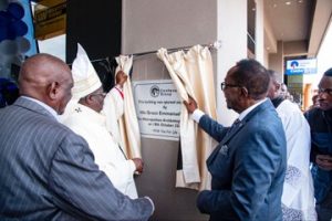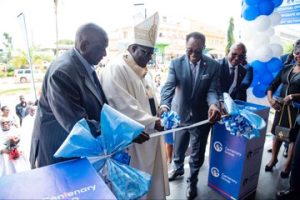 The state-of-the-art multi-purpose six-storeyed commercial complex,  so far the tallest and magnificent building in Mbale city that will serve as the new home for the Centenary Bank Mbale branch, was blessed and opened by Rev. Dr Emmanual Obbo, the Archbishop of Tororo Catholic Diocese.