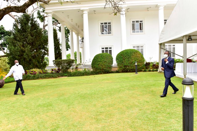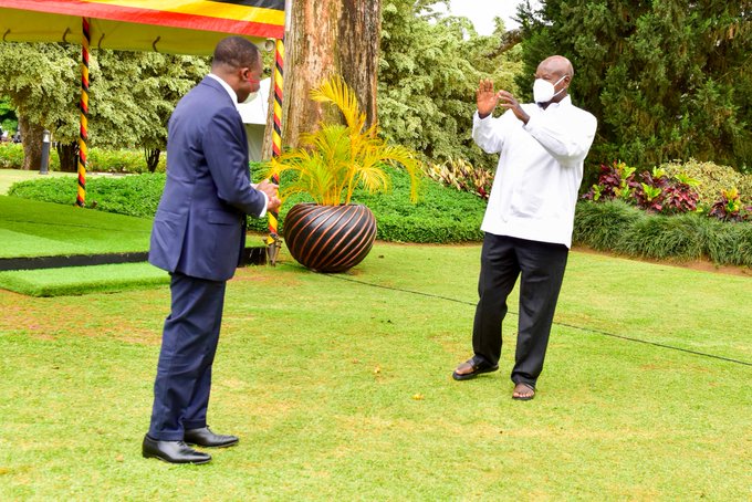 President Museveni has met the outgoing Ambassador of France to Uganda, H.E Jules-Armand Aniambossou, at State House Entebbe.