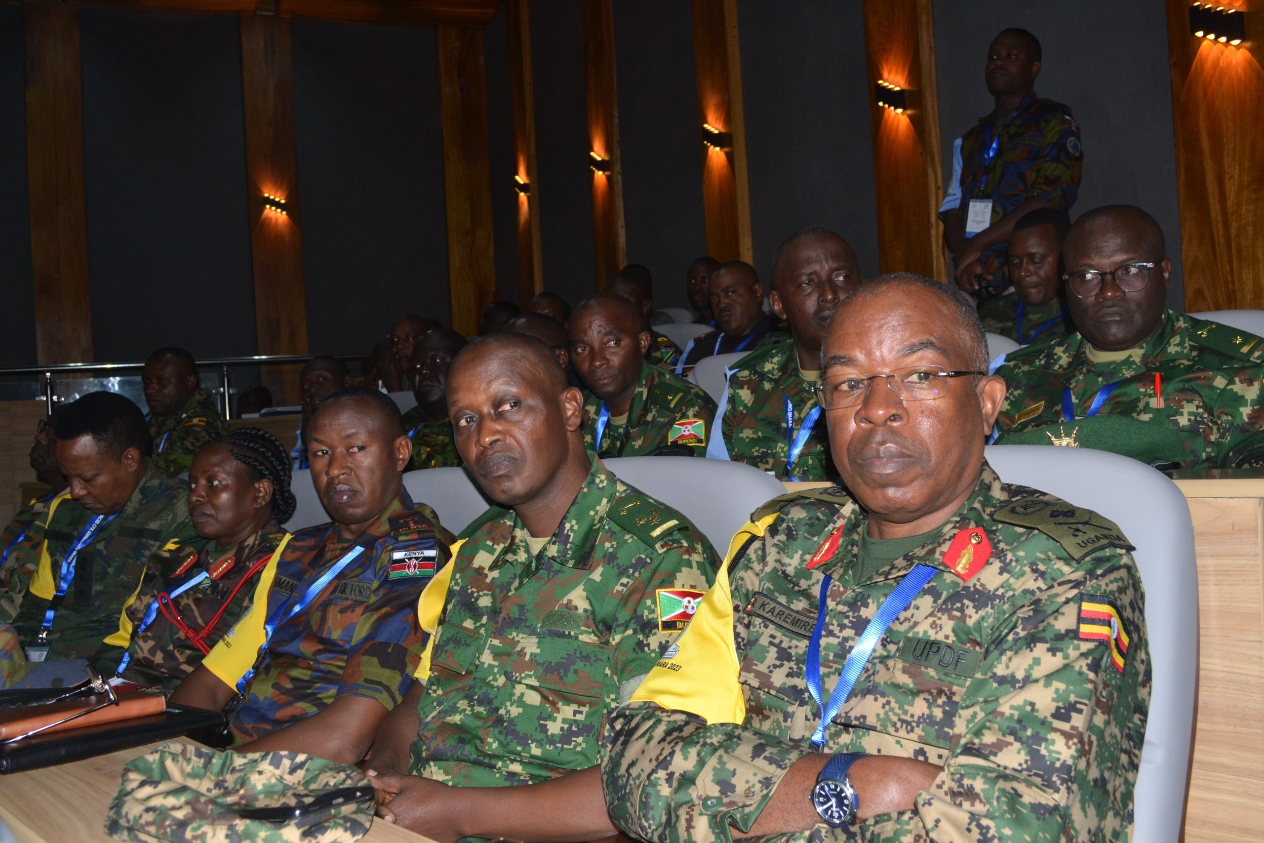 In attendance were: Dr Alice Urusaru Uwagaga Karanzi Head of Mission, Brig Gen Julius Gambosi Force Commander, Commissioner of Police Paul Nkore, EAC secretariat Defence Liaison Officers William Rusodoka, Lt Col Joseph Kimani, Col Caple Mwezi Karangwa, Brig Gen Matur Dharuai Yor, Brig Gen Anchilla Kagombola and Brig Gen Richard Karemire, among others.