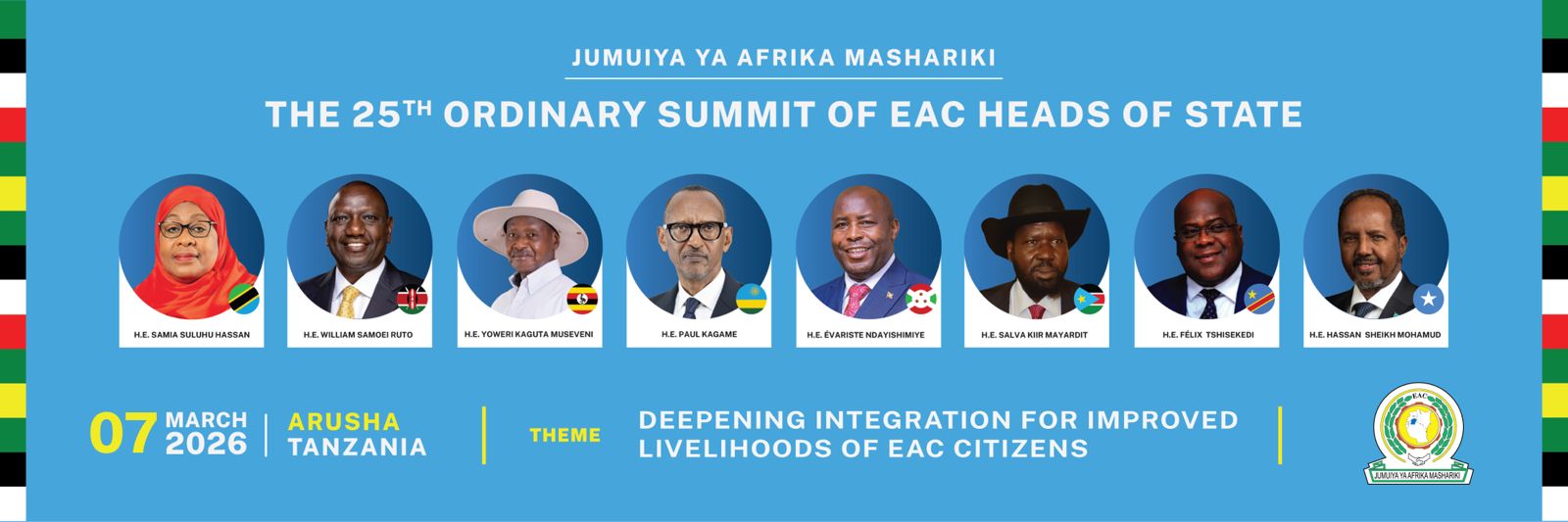 Arusha, Tanzania — The leaders of the East African Community (EAC) are scheduled to convene for the 25th Ordinary Summit of the EAC Heads of State on 7 March 2026 in Arusha, Tanzania.