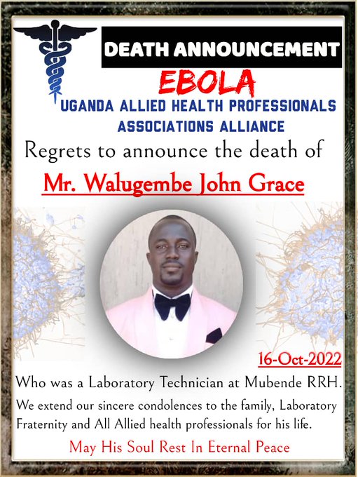 Another health worker Dr John Grace Walugembe has succumbed to the Ebola Virus Disease.