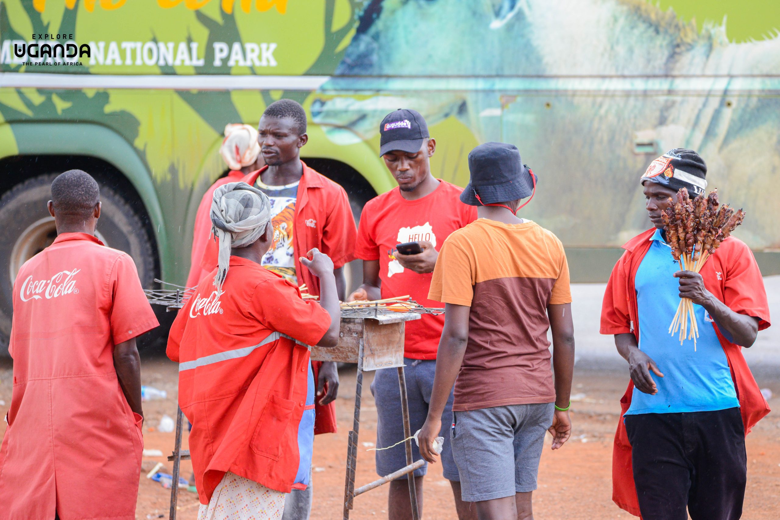 Along River Kafu usually called Kafu, travelers stop to have a taste of cassava or skewers of nyama choma (beef roast) and quench their thirst with a beverage.