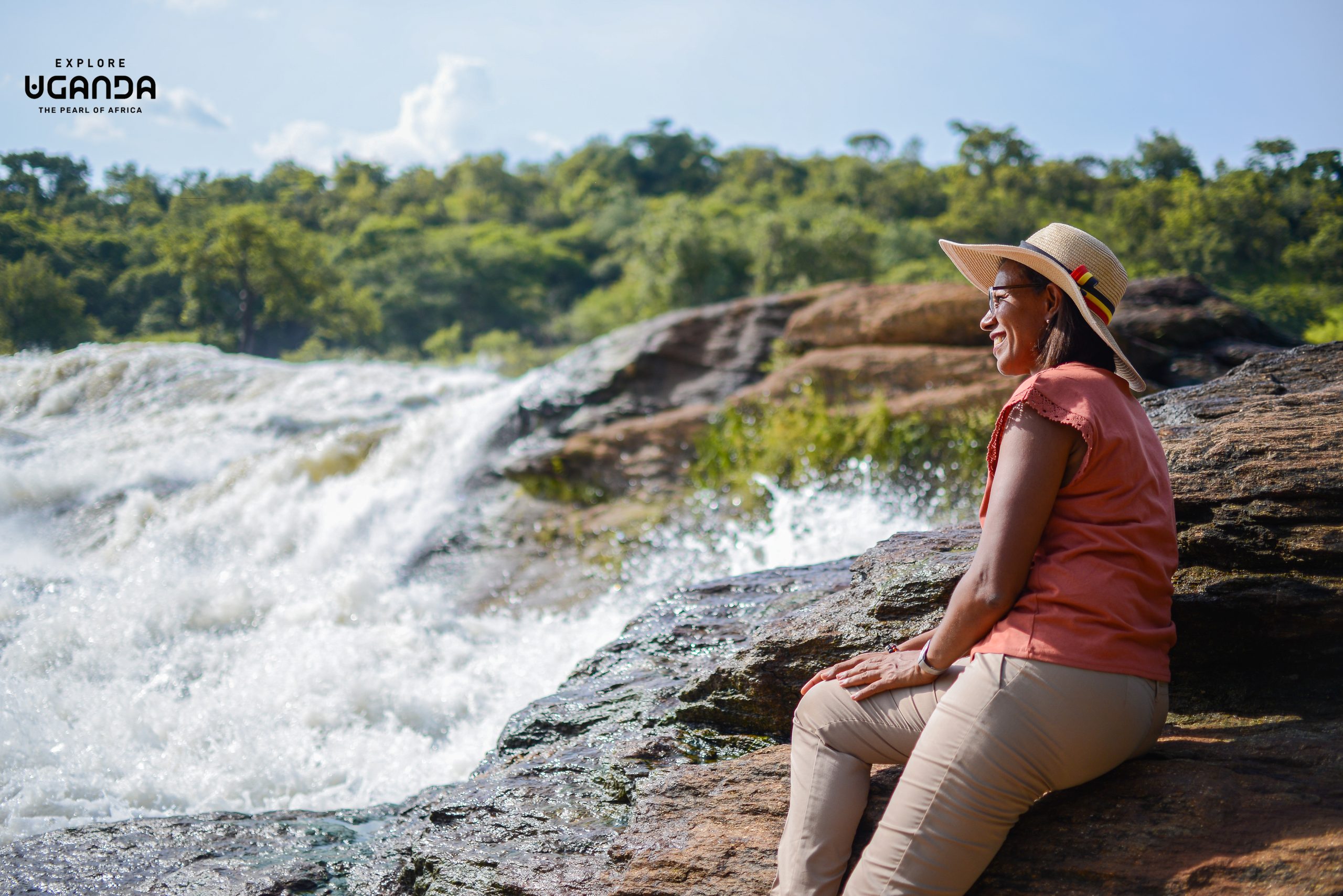 UTB CEO Lilly Ajarova’s bodyguard jumps sky-high to savor the moment of nature at Murchison Falls