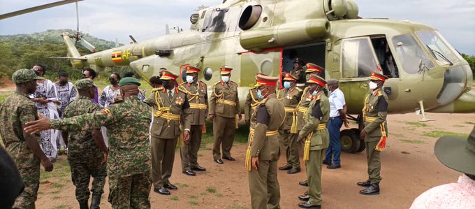 There were sad scenes as the late General’s remains were escorted off the chopper by UPDF officers and the family members.