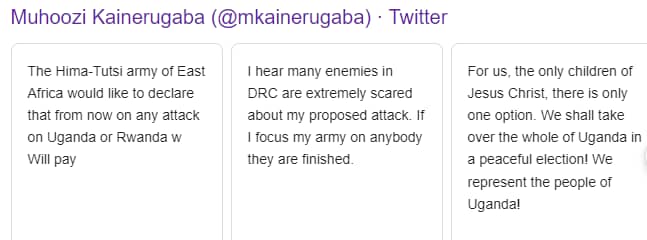 In a series of tweets that have since disappeared from his Twitter handle, Muhoozi said yesterday that he has only one option.
