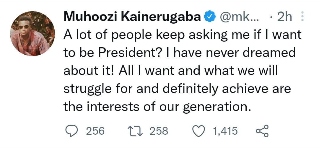 First son and Commander of UPDF Land Forces, Lt Gen Muhoozi Kainerugaba, has said he has never dreamt of becoming a president.