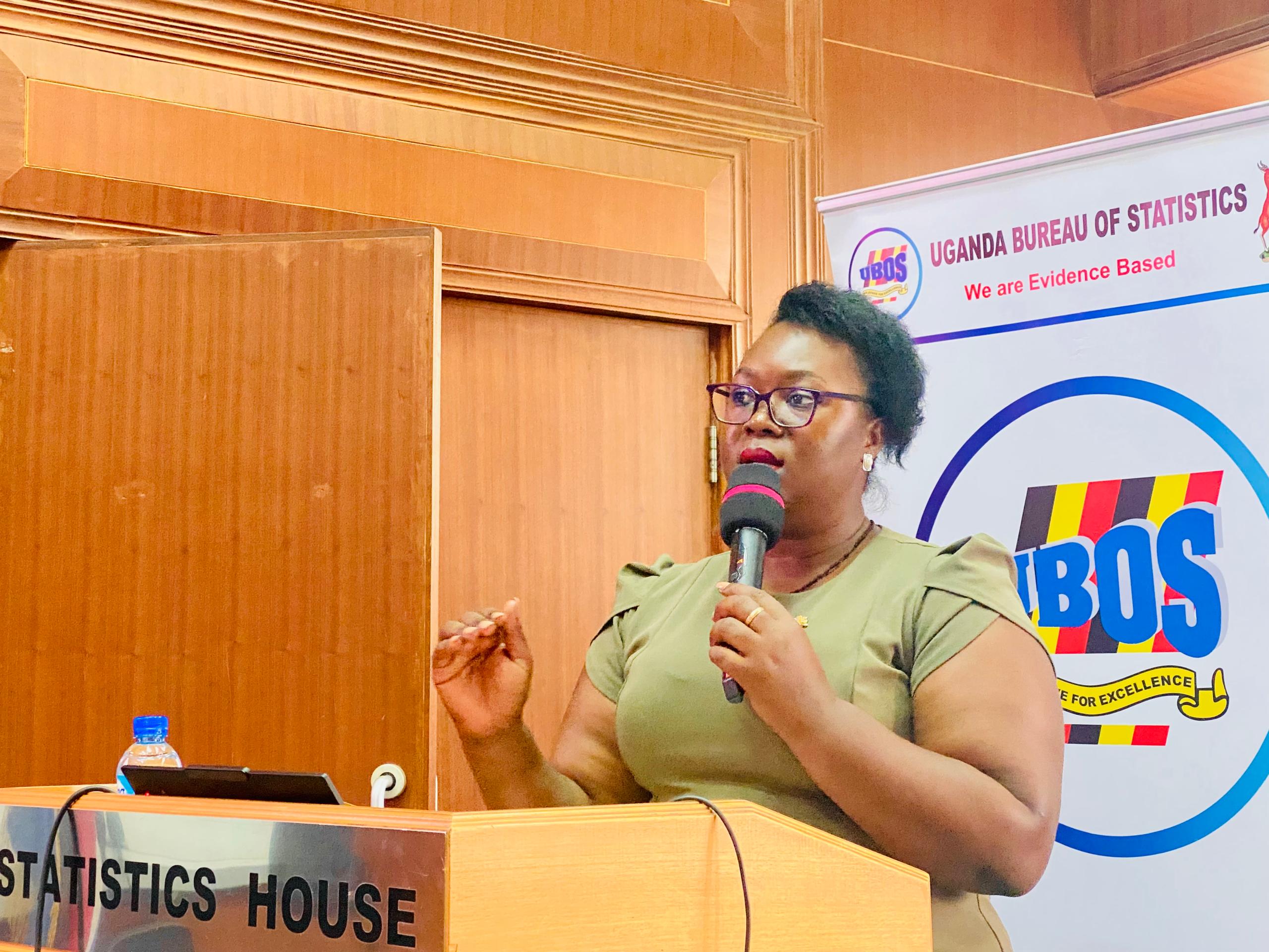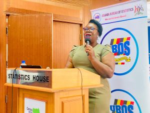 Principal Statistician Juliet Nakayenga presenting the findings to the press at Statistics House in Kampala on Friday