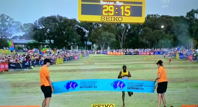 Kiplimo clinched the men’s senior world title Saturday morning in 29:17 minutes in Bathurst, Australia.