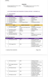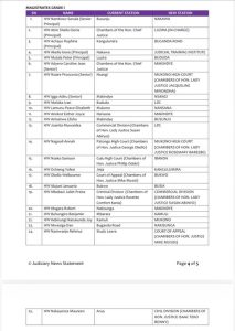 The Judiciary said the full list of 66 officers spans High Court circuits, magisterial areas, and specialised divisions such as the Anti-Corruption Court and Commercial Court.