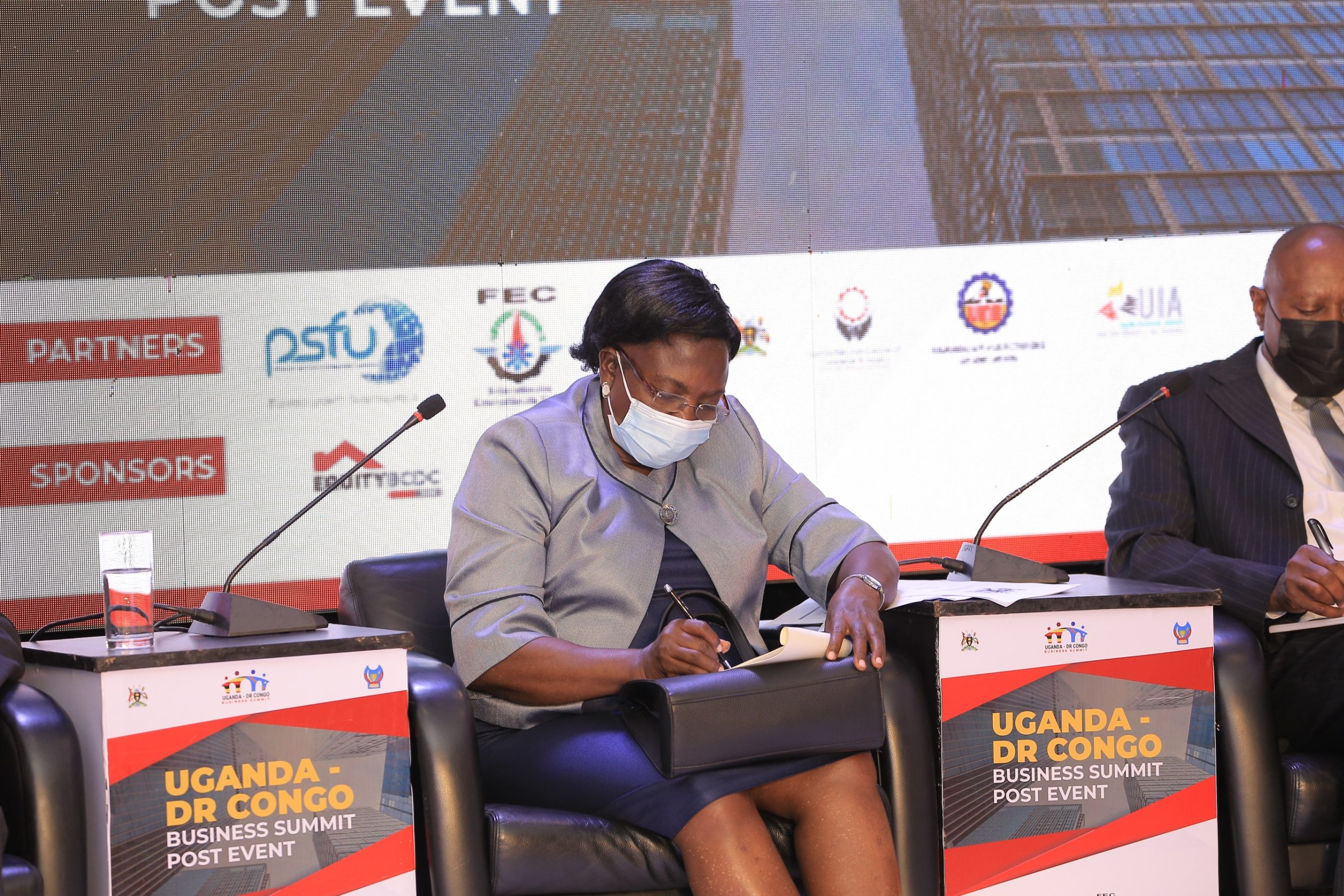 She thanked Private Sector Foundation Uganda (PSFU) and Odrek Rwabwogo, the Presidential Advisor on Special Duties, for the initiative of holding the “#UGDRCBusinessSummit Post review event”.