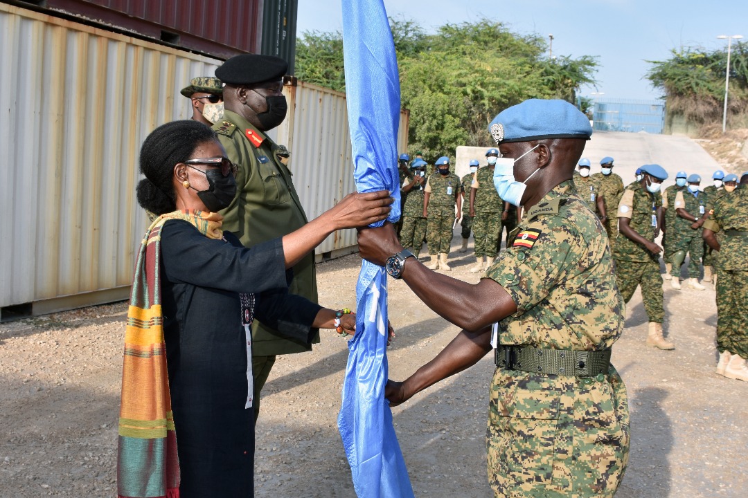 Lt Col Magungu was later handed a UN flag by the Deputy Special Representative of the Secretary General Her Excellency Kiki Gbeho who welcomed the new group to the UN security team and expressed her commitment to work together.