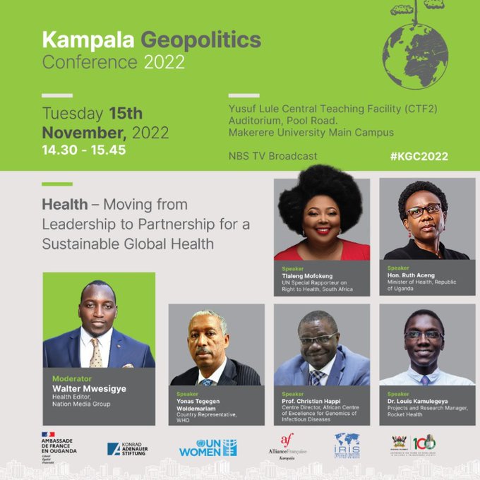 Speakers include; Tlaleng Mofokeng – UN Special Rapporteur on Right to Health, South Africa, Hon. Ruth Aceng – Minister of Health Uganda, Yonas Tegegen Woldemariam – Country Representative WHO, Prof. Christian Happi – Centre director, African Centre of Excellence for Genomics of Infectious diseases and Dr Louis Kamulegeya – Projects and Research Manager, Rocket Health.