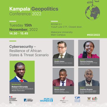 Speakers are; Dustin Dehez – Managing Director secori advisors, Famious Orishaba – Cyber Security Expert | Threat Intelligence Analyst, Moses Owinyi – Centre for Multilateral Affairs, Stephen Mugabe – Manager Data Protection Affairs, National Data Protection Office Uganda and Nanjira Sambuli – UN Panel on Digital Cooperation (TBC).