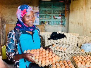 Nakagwe Aisha, an egg trader in the area, said her business has grown significantly since joining a savings group. She started selling 100 trays of eggs but now handles about 1,000 trays, enabling her to pay school fees and meet household needs.