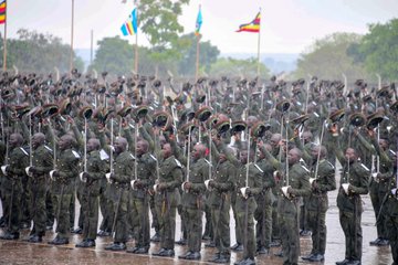 The Commandant Kaweweta Military recruit training school Brig Gen James Barigye Muheesi informed the gathering that of the 782 commissioned officers, 3 provisional officer cadets were from the royal military academy of Sandhurst and 2 from the Tanzanian Military academy.