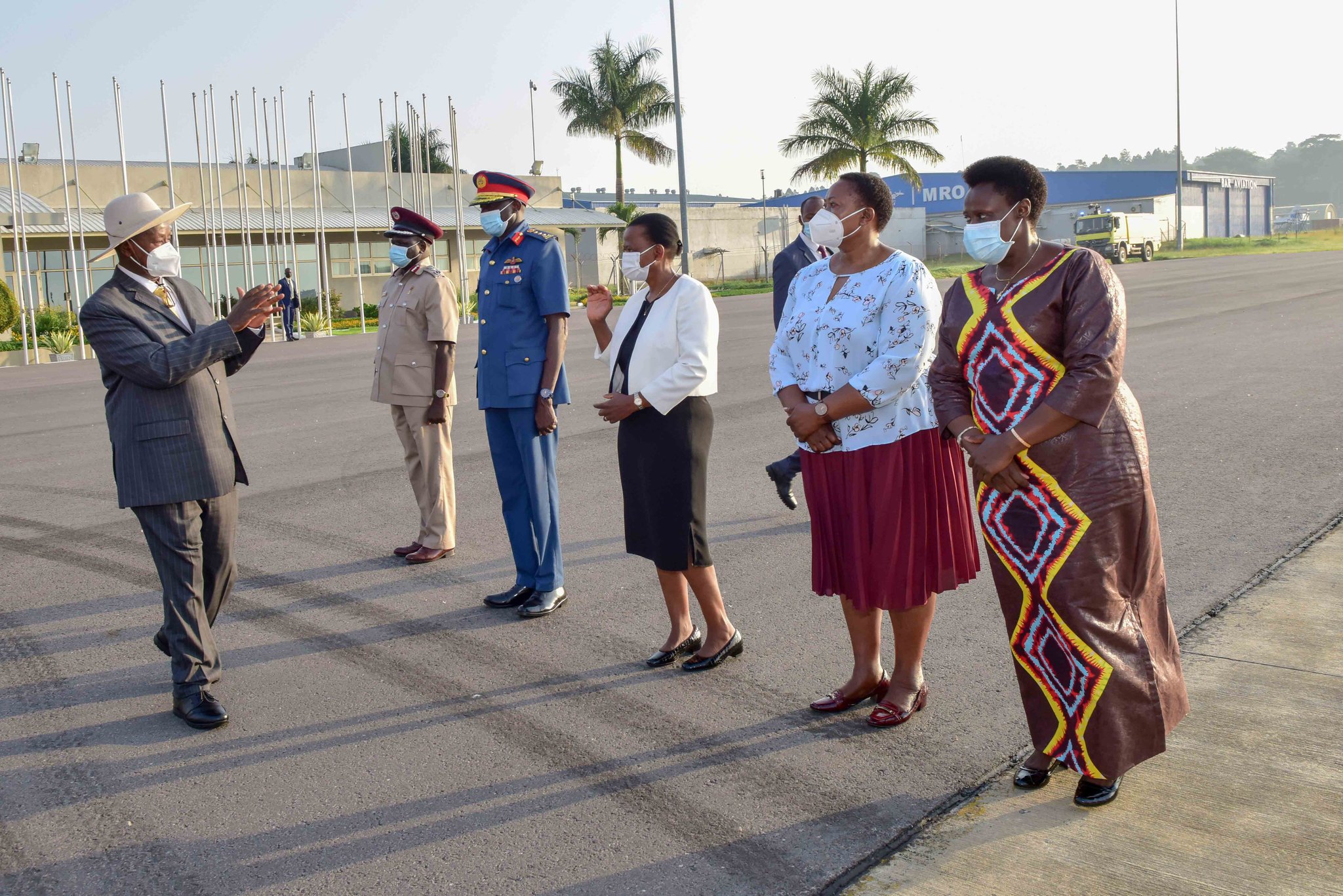 Museveni was seen off at Entebbe Airport by the Vice President, Jessica Alupo, among other key government officials.