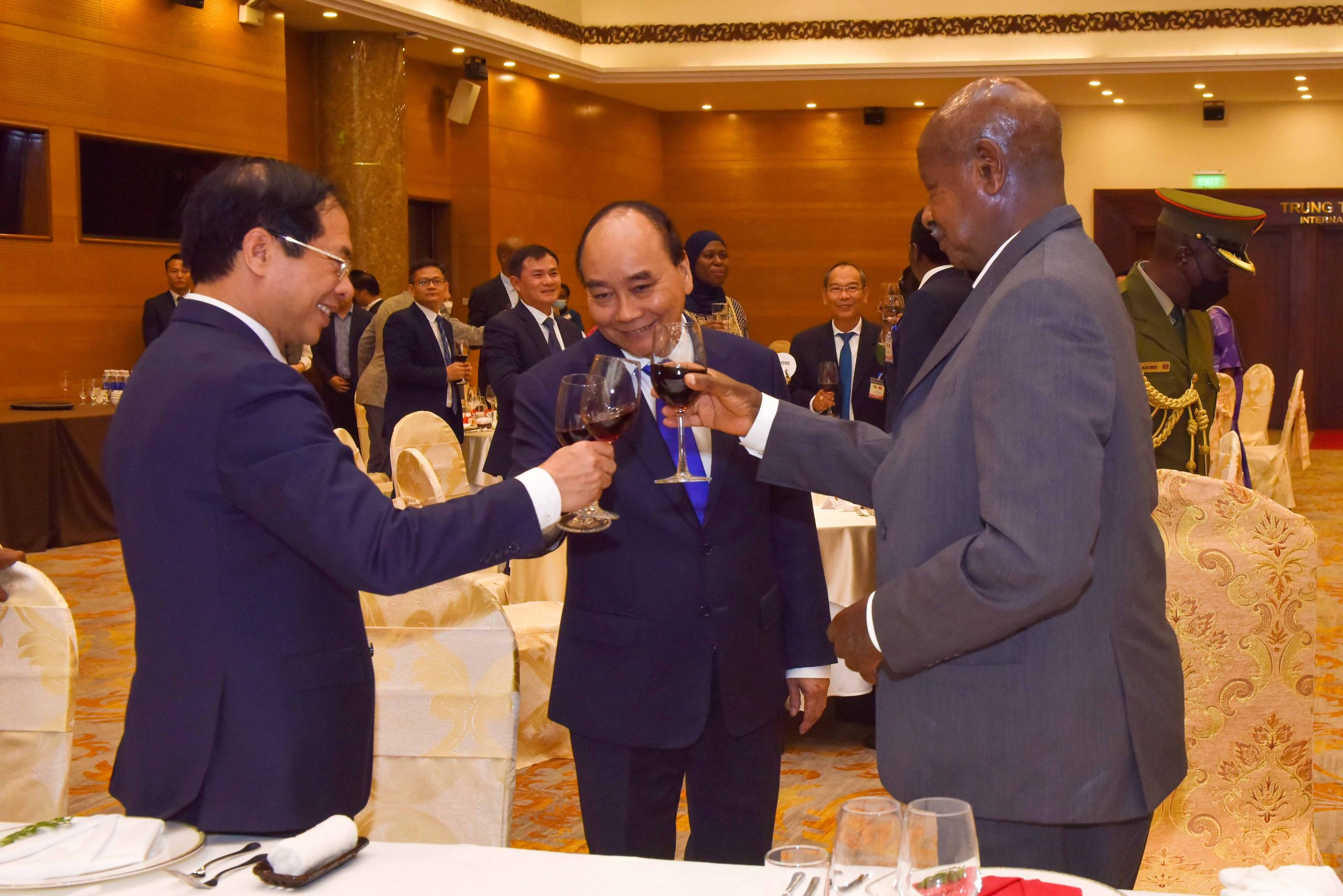 The two leaders proposed a toast to good health and the growing consolidation of friendship and cooperation between Vietnam and Uganda.