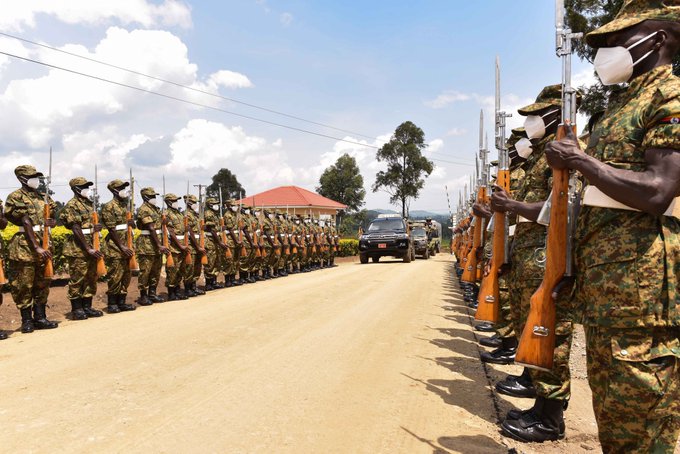 I met officers of the Mountain Division Specialised Force at Muhoti Barracks in Fort Portal, Kabarole District to salute them for their role in the successful operation Shuja and encourage them. We should not stop pounding (Kusekula) until we achieve our desired grade (Kunoza). pic.twitter.com/IiJVFVaRtb