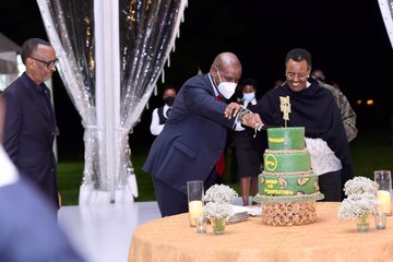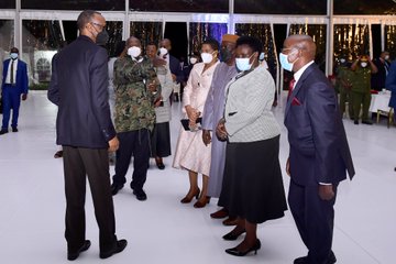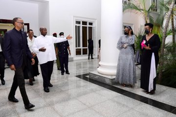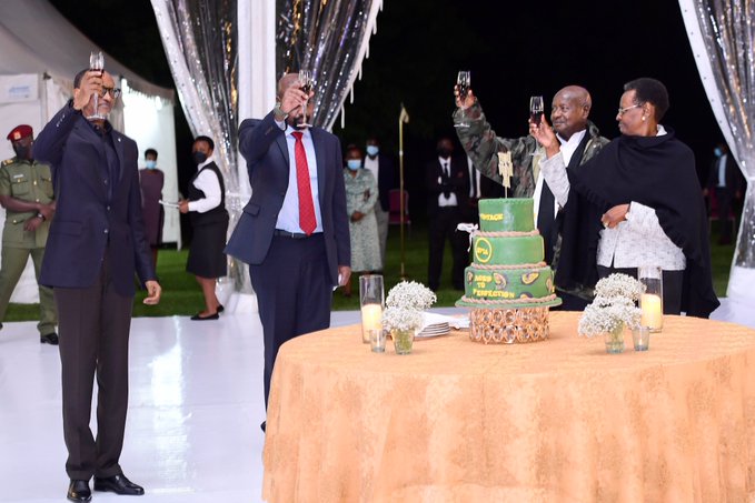 Museveni on Sunday night hosted H.E President Paul Kagame for a dinner in honour of Lt Gen Muhoozi at State House, Entebbe.