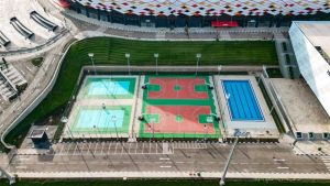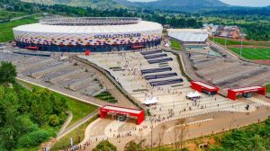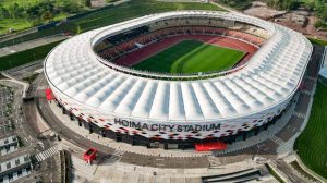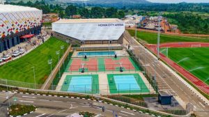 The Hoima City Stadium boasts a FIFA-standard hybrid grass pitch that scored a perfect five-star rating in an independent assessment. The complex also includes a 2,000-seater indoor arena for basketball, boxing and volleyball, a semi-Olympic swimming pool, an eight-lane IAAF-certified athletics track, a training pitch, and outdoor tennis and netball courts.