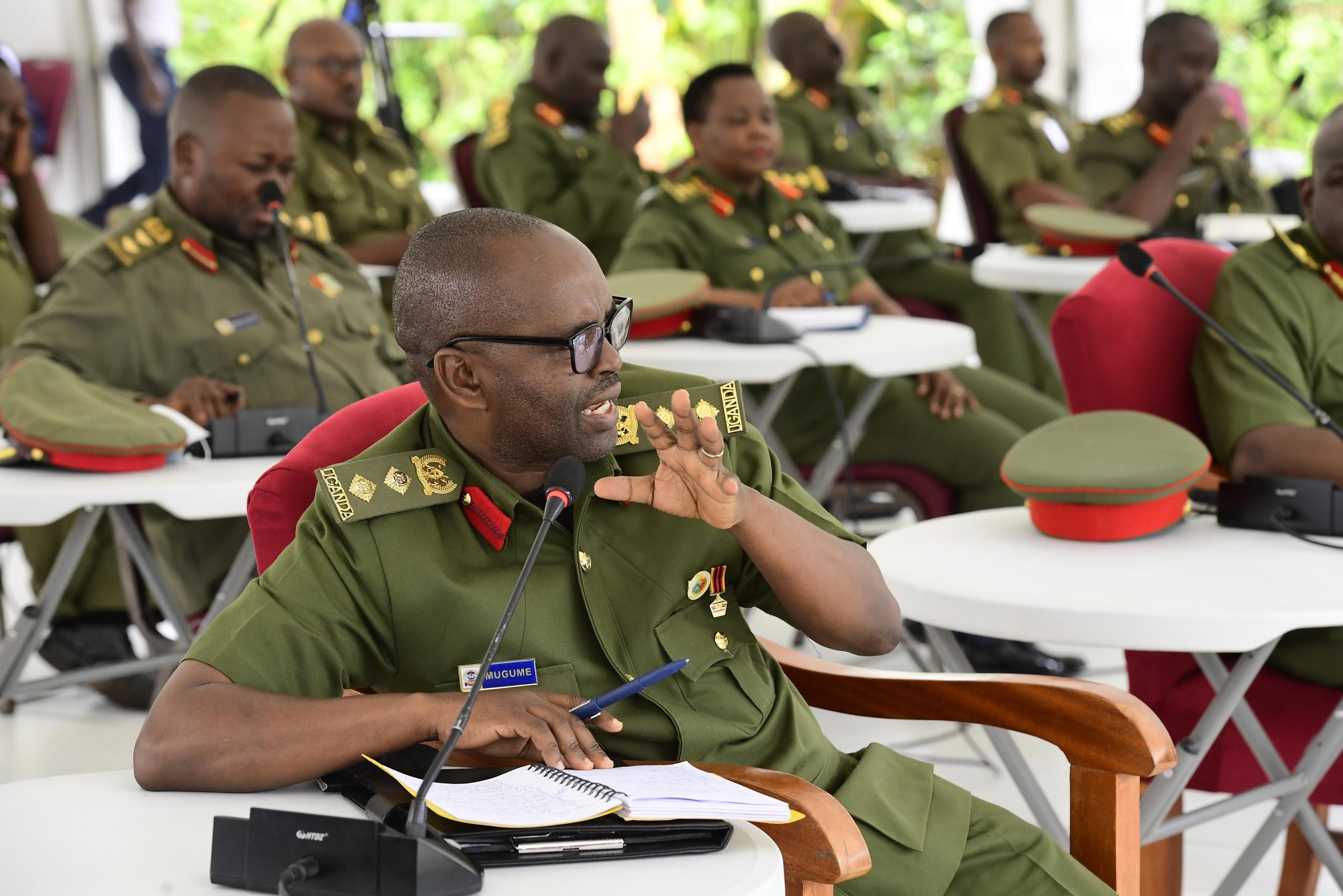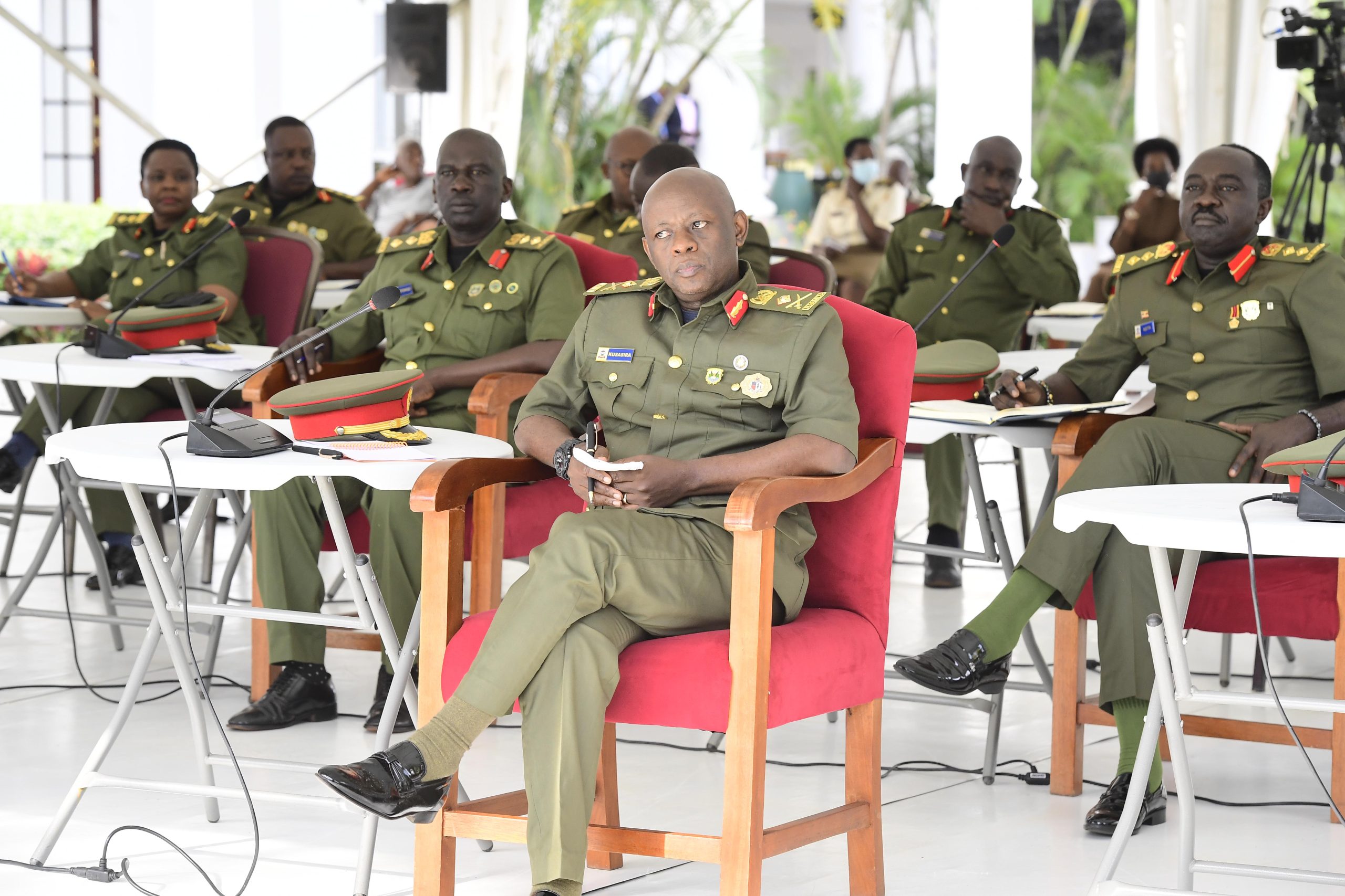 General Museveni was interacting with student officers from the National Defense College in Njeru led by the Commandant, Maj. Gen. Francis Okello.