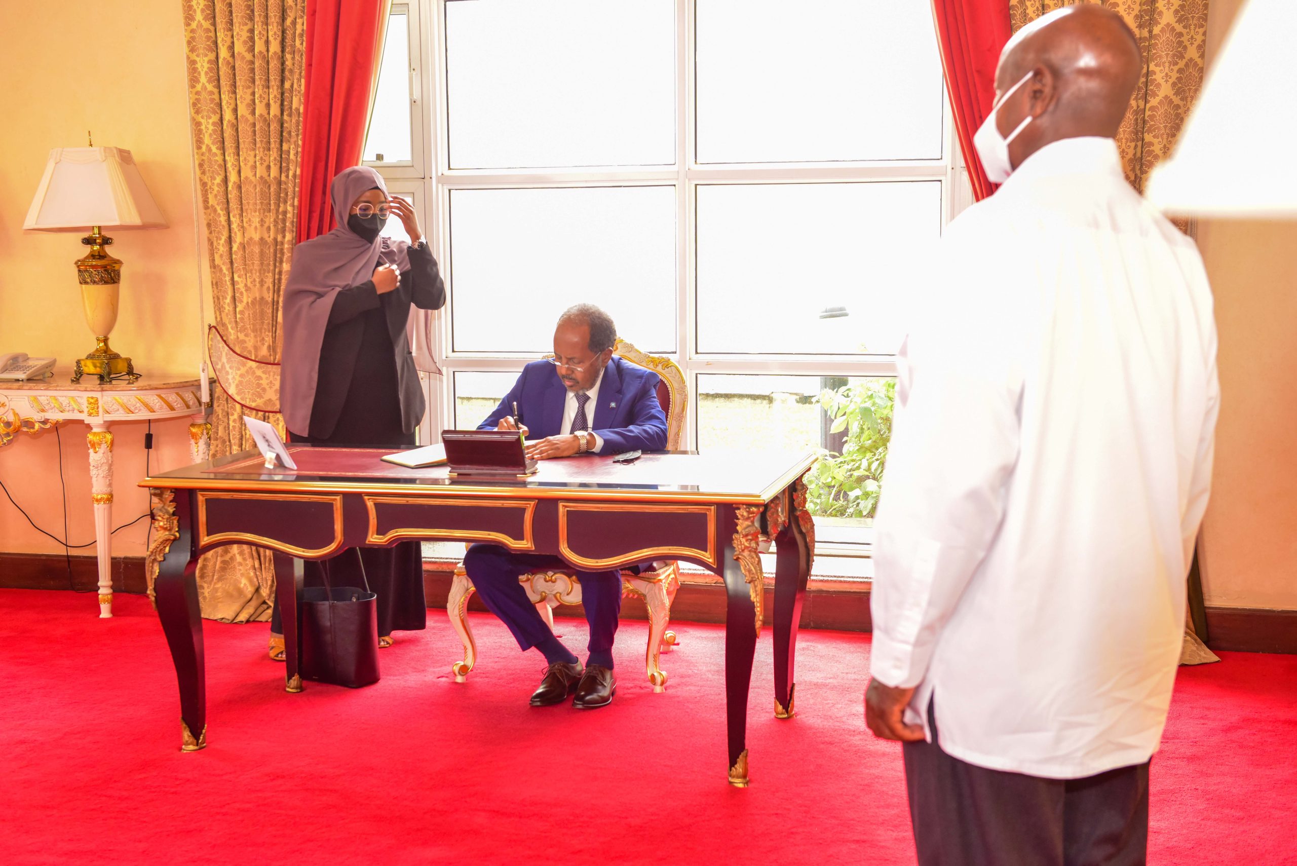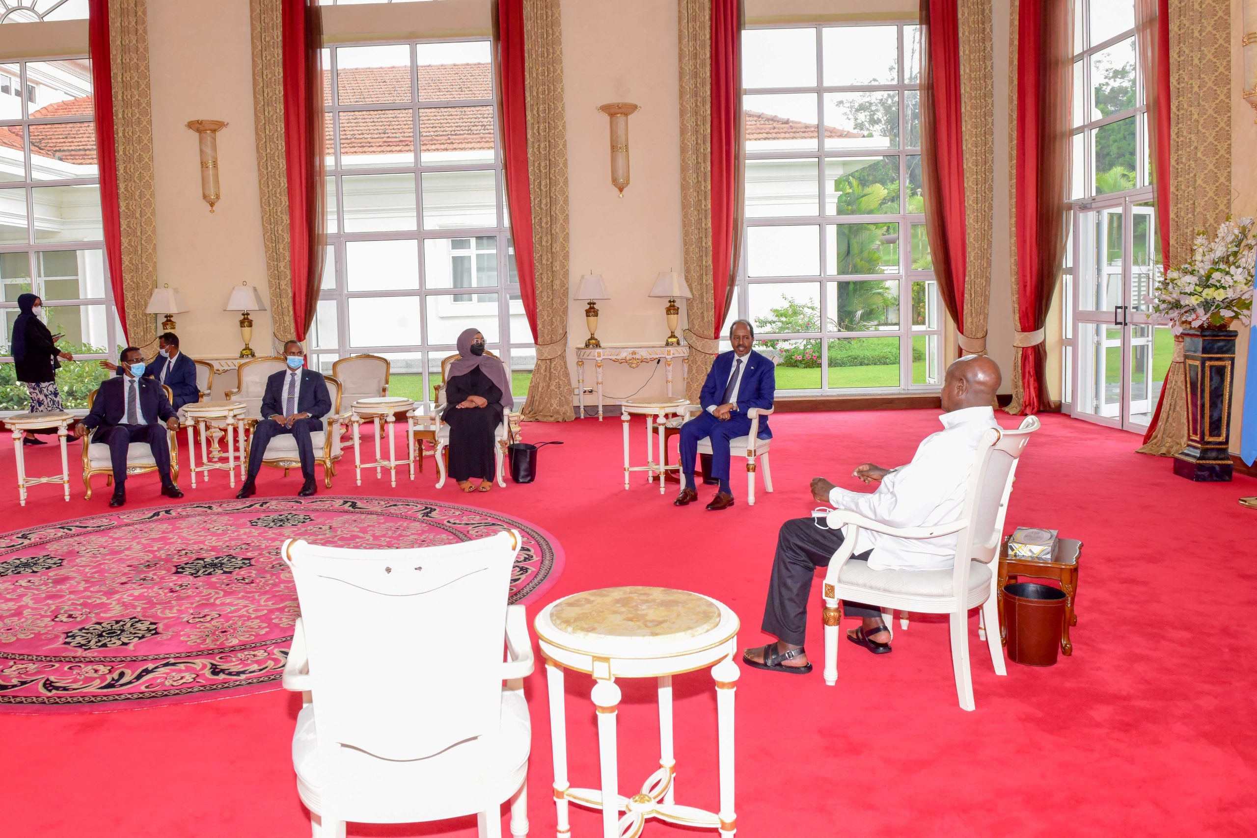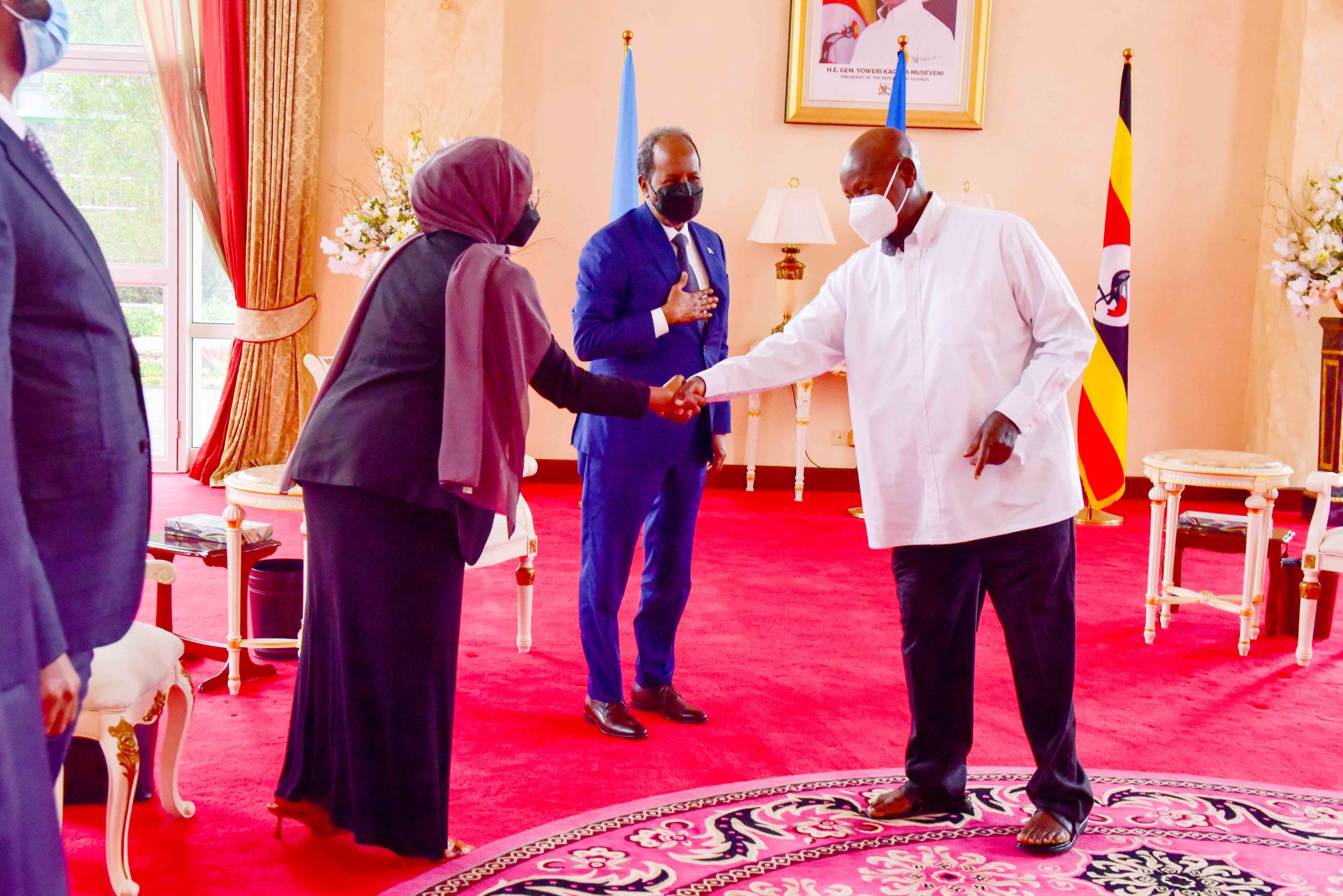 This was during a meeting with the visiting President of the Federal Republic of Somalia, His Excellency, Hassan Sheikh Mohamud who paid a courtesy call on H.E Museveni at State House Entebbe before returning to Somalia.