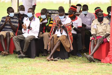 During the ceremony, Museveni handed the Uganda flag to Ms. Lomonyang Silvia, a resident of Lokitumo, Mogoth Parish who convinced her husband, Keem Akol, to surrender his gun to the UPDF.