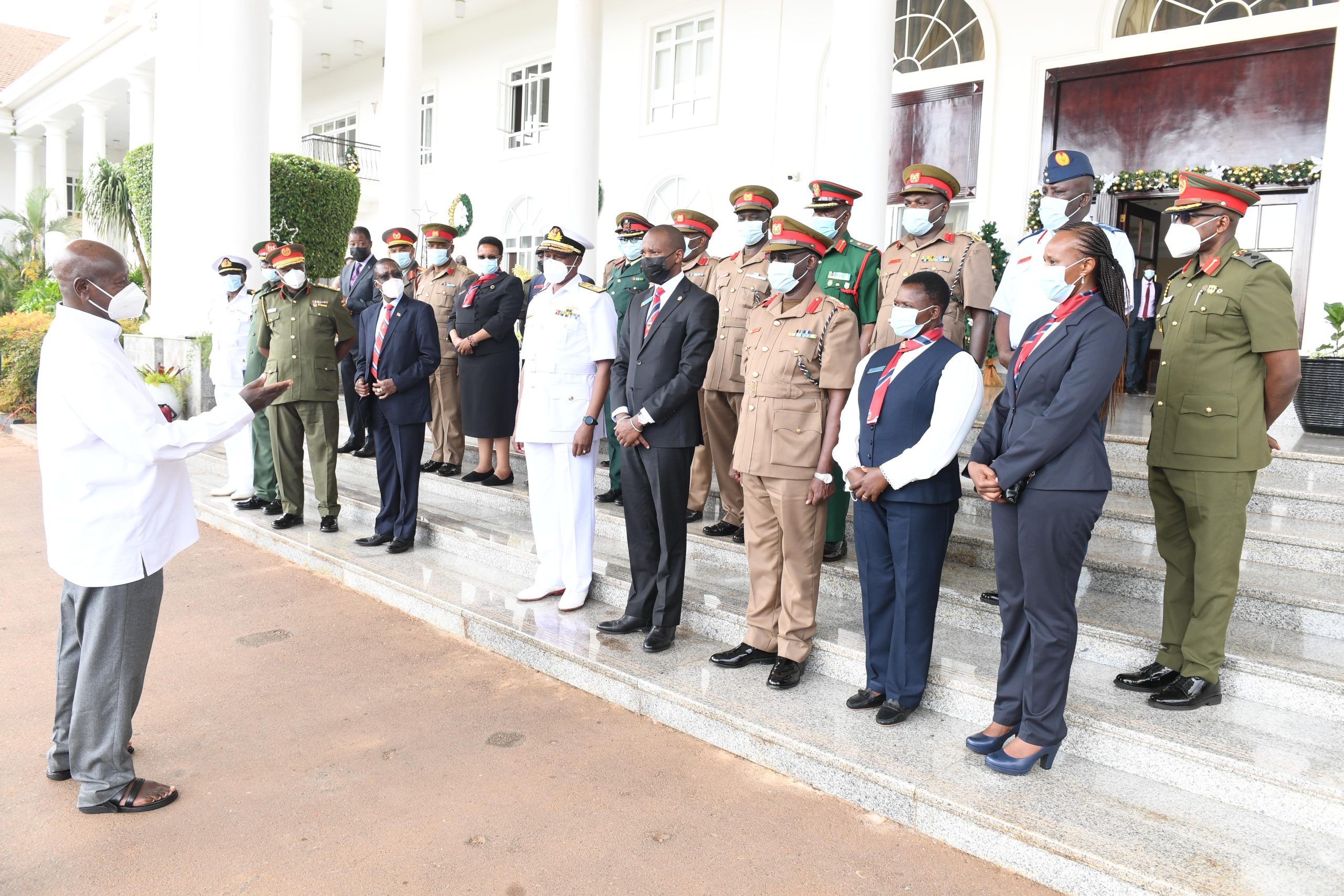 President Museveni was delivering a lecture on Opportunities to a visiting delegation of Senior Military Officers from the National Defense College of Kenya led by the Deputy Commandant of the College Major General Kahariri.