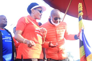 Kabaka Mutebi, who turned 67, arrived at Mengo Palace in Kampala in the company of the Nnabagereka Sylvia Nagginda where hundreds of his subjects gathered and eagerly waited for him to flag off his birthday run.