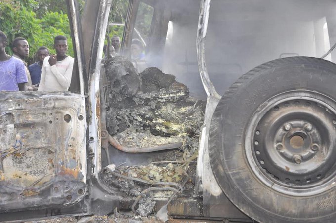 An ambulance from Bwera Hospital in Kasese caught fire along Kasese-Fort Portal highway, a few kilometers from kibito town in Bunyangabu District. Two of the occupants including a patient and nurse have died on spot.#CapitalNewsDesk