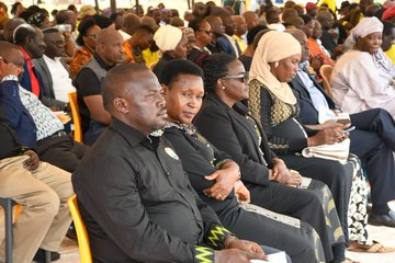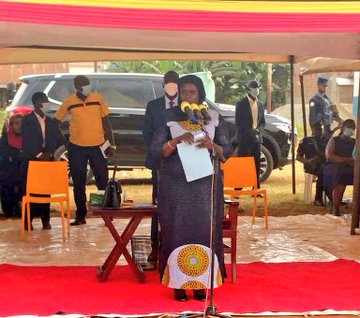 The Vice President, H.E. Jessica Alupo, attended the burial where she addressed thousands of mourners.