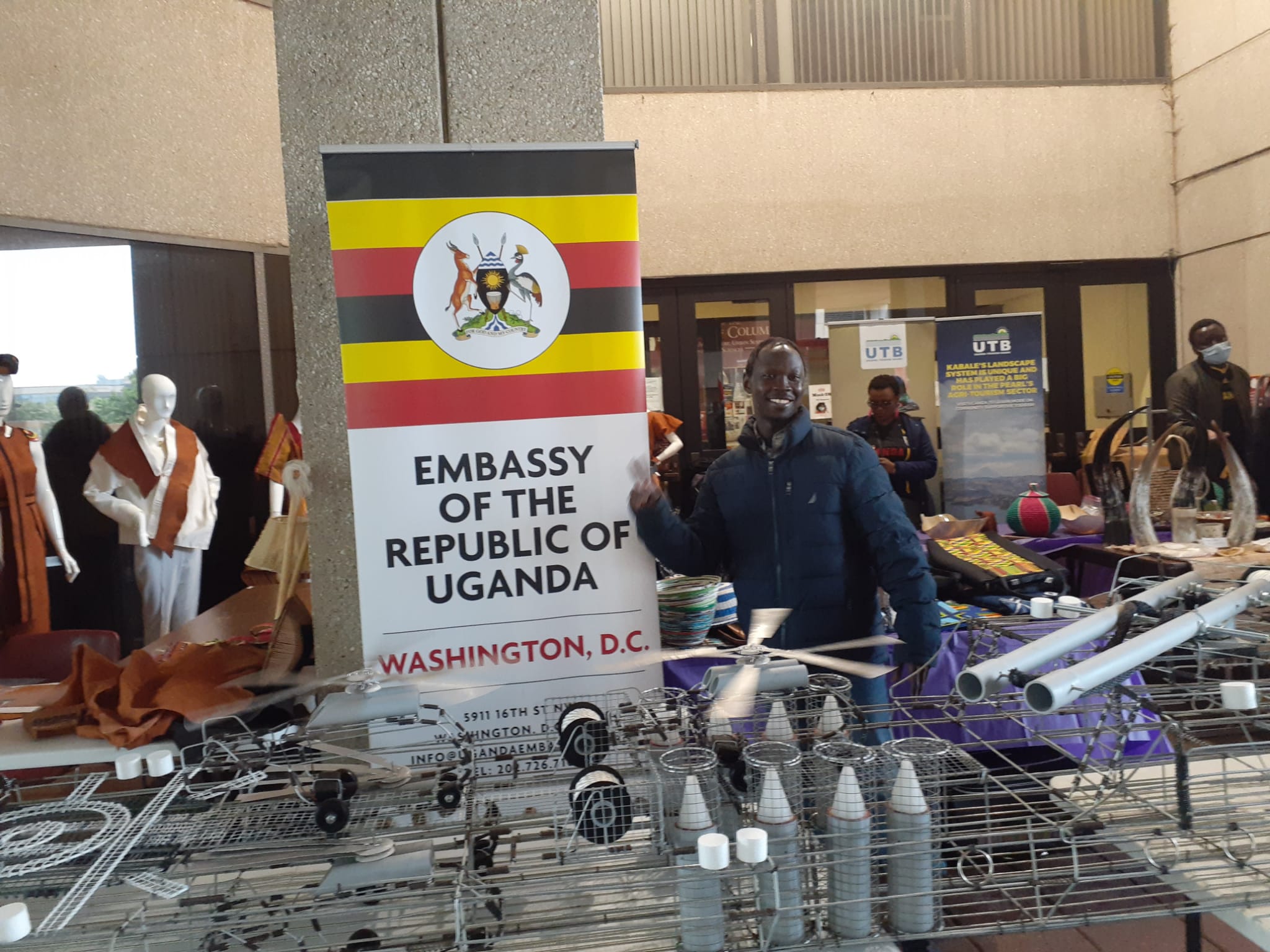 The Embassy exhibited the giant Ankole Cowhorns and their by-products as well as art pieces made using Ugandan Barkcloth, an endangered natural textile, at the University of DC Dennard Plaza, 4200 Connecticut Avenue NW.