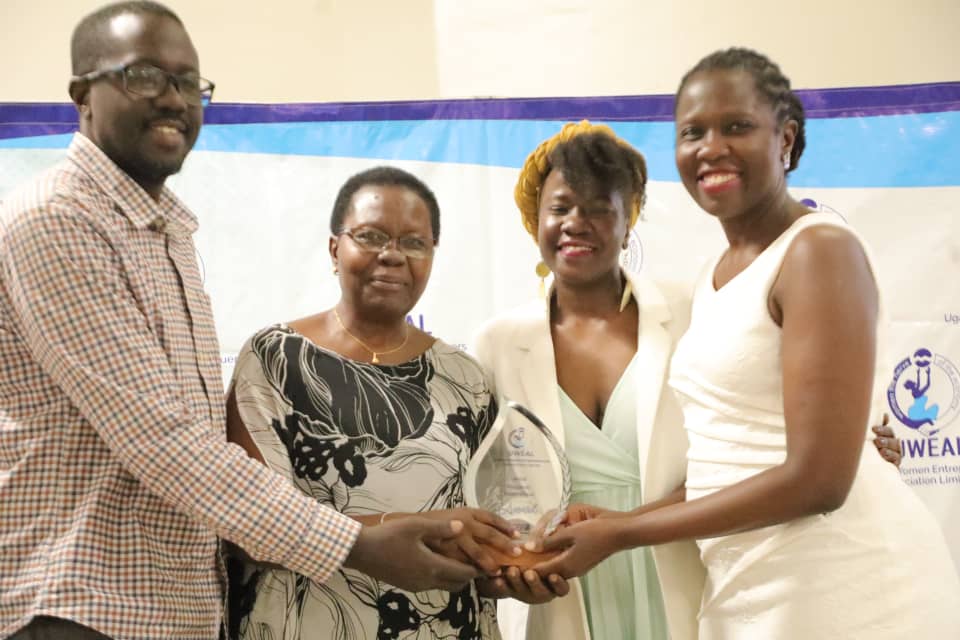 Donnah Masolo Murungi, the founder of Sparkles Saloon took home the Wanendeya Award for UWEAL Spirit. The award was handed to her by Sarah Kagingo and Kitakule.