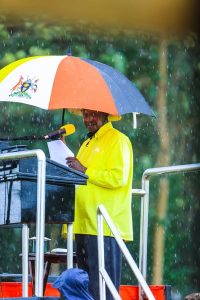 “Not even the heavy downpour could dampen the spirit of the people,” the NRM party said in a social media message. “The crowd remained steadfast to hear the President speak about wealth creation, education, health, and improving the road network in the sub-region.”