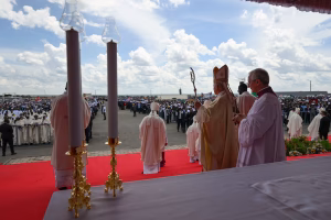 The Mass in Saurimo was marked by vibrant expressions of faith, with the congregation welcoming the pontiff with songs, applause, and traditional dances despite the intense heat.