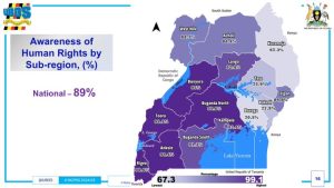 The Uganda Bureau of Statistics (UBOS) has released the findings of the National Governance, Peace and Security Survey 2024/25, indicating 89% of the people (18+ years) are aware of their Human rights.