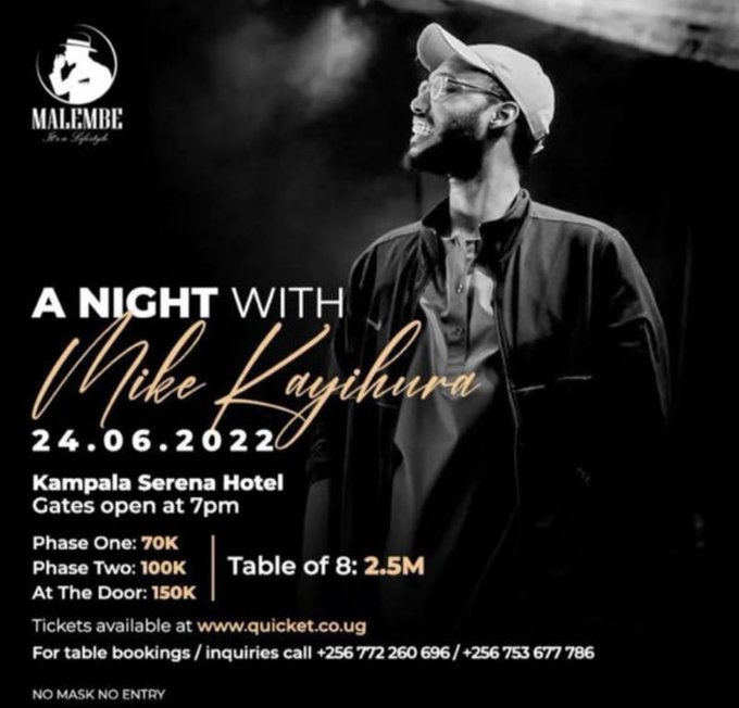 Rwandan artist Mike Kayihura is set to headline his first international performance at the Kampala Serena Hotel on June 24, 2022.
