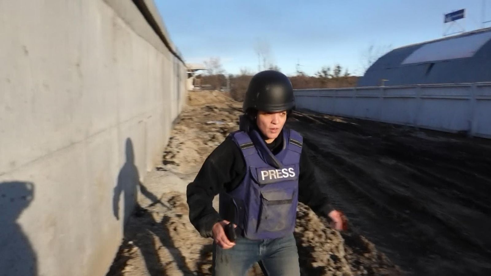 Sky News journalists running for cover after coming under fire by Russian troops (Photo credit: Sky News)