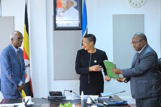 Speaker Among offered guidance while receiving the Annual Auditor General’s Report to Parliament for the Financial Year 2021/2022 from, John Muwanga, the Auditor General, on Thursday, 19 January 2023. The report reveals that more than Shs594 million has not been accounted for.