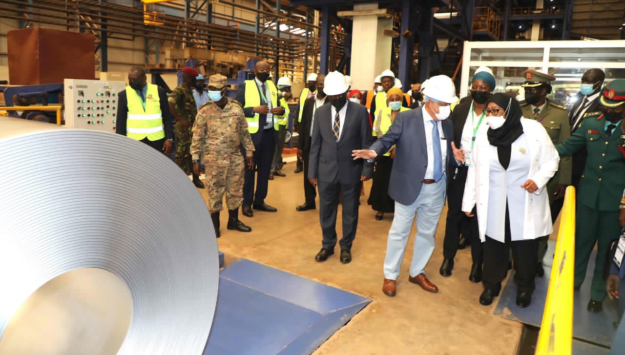 In this regard, Her Excellency President Samia Suluhu Hassan had a dialogue with the Private Sector Foundation-Uganda (PSFU) and paid a visit to the Namanve Industrial Park, where Her Excellency was taken on a guided tour of Roofings Uganda Ltd.
