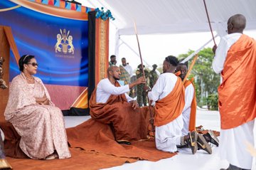 Earlier today, King Oyo, accompanied by his mother, Queen Mother Best Kemigisa, presided over a series of sacred rituals led by Omujwera Musuuga Charles Kamurasi. As part of the ceremonies, the King sounded royal drums nine times, received spears from the Basiita clan, and participated in other traditional rites ahead of his official coronation anniversary on September 12.